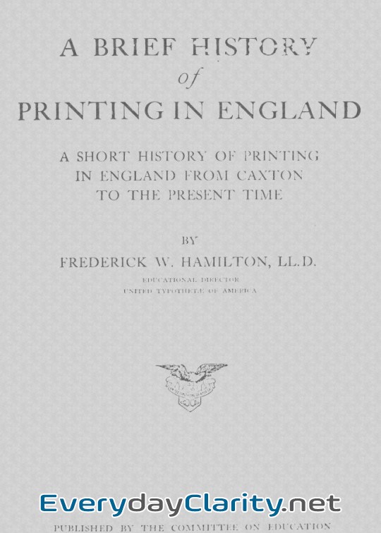Few things are as revealing as a story that watches people make choices. A Brief History Of Printing In England . A Short History Of Printing In England From Caxto by Frederick W. Hamilton is one of those works.