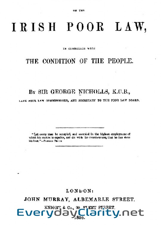A History Of The Irish Poor Law, In Connexion With The Condition Of The People (by Sir George Nicholls) is a classic that stays interesting because it stays human.