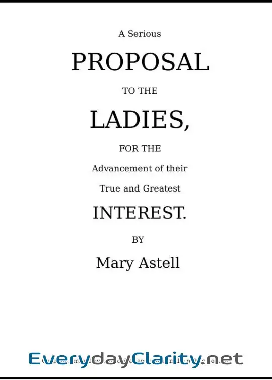 Here is a work that trades spectacle for clarity. A Serious Proposal To The Ladies, For The Advancement Of Their True And Greatest Interest by Mary Astell is one of those works.