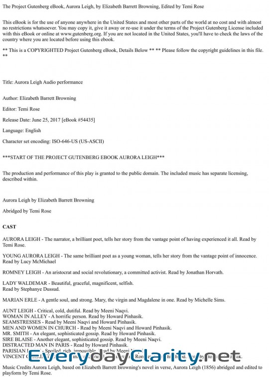 Readers can purchase the publication at bookstores or refer to the ebook Aurora Leigh . Audio Performance PDF by Elizabeth Barrett Browning if they are not yet able to buy a physical copy.