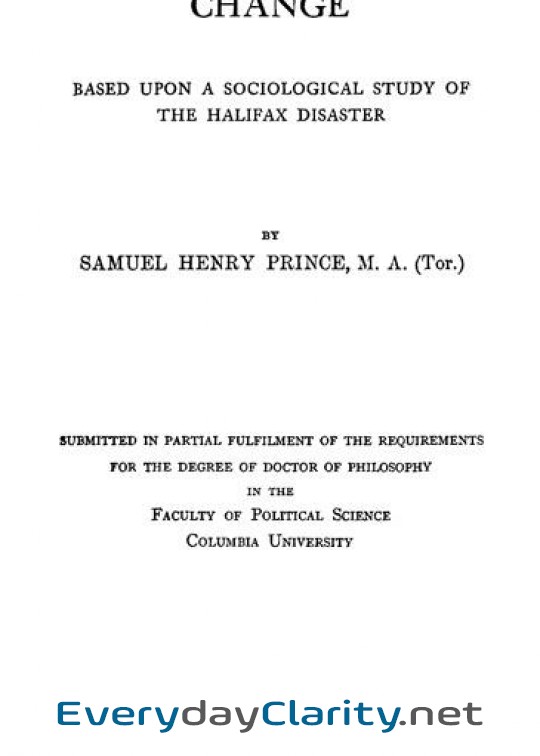 In Catastrophe And Social Change . Based Upon A Sociological Study Of The Halifax Disaster, Samuel Henry Prince keeps the focus on what a person becomes under pressure.