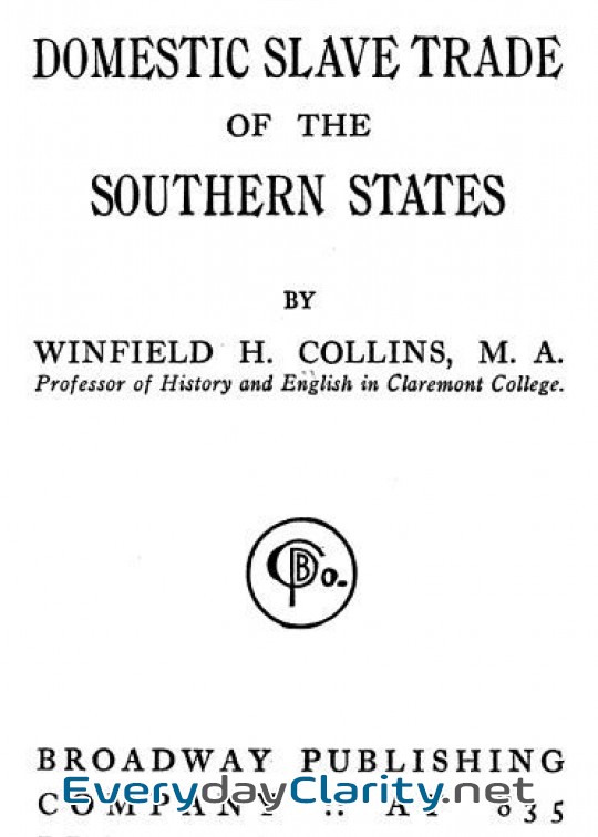 You can read this quickly, but it rewards the reader who pauses. The Domestic Slave Trade of the Southern States by Winfield H. Collins is one of those works.
