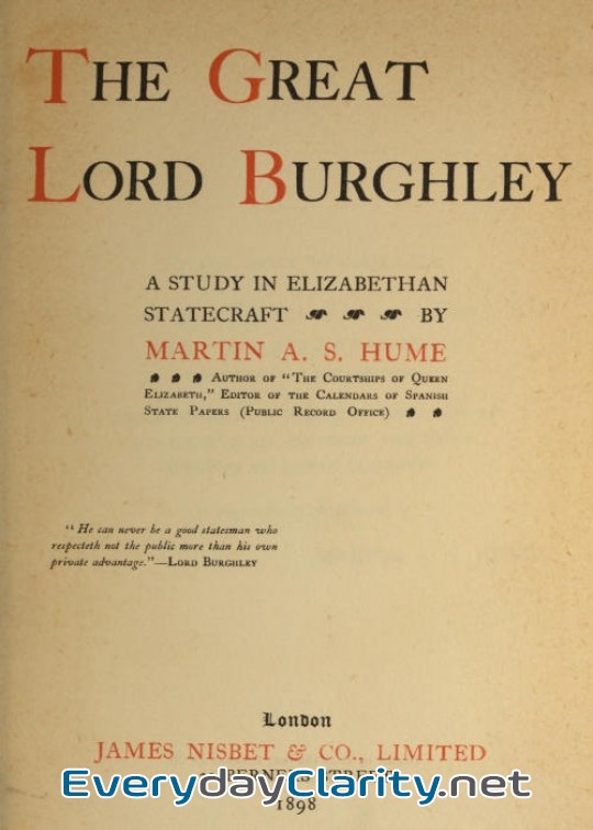 This is the kind of text that does not ask for speed. It asks for presence. The Great Lord Burghley. A Study In Elizabethan Statecraft by Martin A. S. Hume is one of those works.