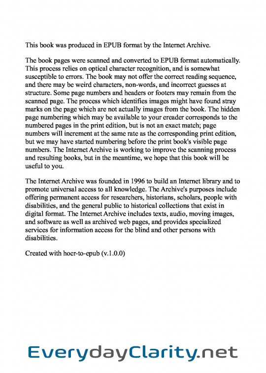 All electronic books and ebooks on everydayclarity.net are copyrighted and belong to their respective authors. We encourage readers, if possible, to support the authors by purchasing the printed versions.