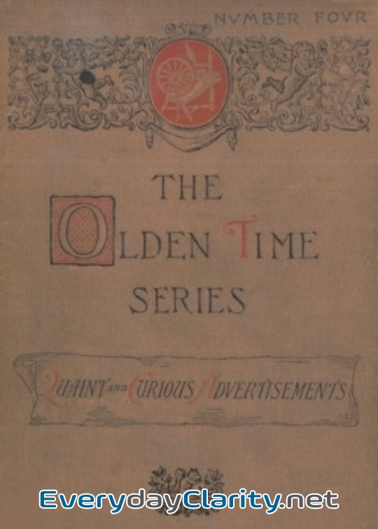 THE OLDEN TIME SERIES, VOL. 4. QUAINT AND CURIOUS ADVERTISEMENTS . GLEANINGS CHIEFLY FROM